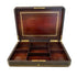 Caja de marquetería boulle época Napoleón III con fondo negro y flores arteriales con vivos dorados e incrustaciones en nacar. En su interior posee 7 compartimientos. Madera de jacarandá y monograma D.D