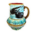 Jarra para vino de majólica esmaltada turquesa claro decorada con golondrinas y plantas. En su interior esta esmaltada color rojo escuro. SXIX