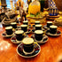 Elegante juego de 11 tazas de café azul cobalto con vivos en oro y plato con borde de plata. Francia SXIX.