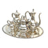 Elegante juego de té francés Boulenger estilo Luis XVI con diseño "Rubens". Contiene 5 piezas con asas de acanto apoyadas sobre una base oval y selladas por uno de los principales plateros de francia Adolph Boulenger.
