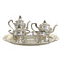 Opulento juego de té Christofle "Lutetia" estilo barroco con motivos de flores y follaje. Contiene 5 piezas y cada pieza está sostenida con una base cilindrica.