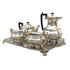 Elegante juego de té Eduardiano estilo Queen Ann inglés de plaqué EPNS con asas de madera. Cada pieza muestra la relación entre superficies lisas contrapuestas entre sí, usando la reflexión de la luz para crear textura.
