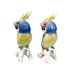 Par de cacatúas pequeñas de porcelana alemana Karl Ens con motivos azules, rosa y amarillo. Paradas sobre una rama.