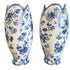 Elegante par de mayólicas con tonos azul y blanco mostrando motivos florarles de crisantemos en flor.