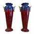 Par de majólicas Art-Deco rojas con azul y asas en forma de hoja. Numeradas 263