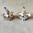 Par de saleros franceses de porcelana EDME SAMSON de dos querubines sobre dos recipientes pintados a manos mostrando paisajes con aves y flores. Sellados. SXIX