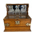 Tántalo ingles de tres botellas de cristal cortado con cajonera con vivos en bronce y tapas en vidrio biselado.