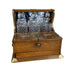 Tántalo ingles de tres botellas de cristal cortado con cajoneras con compartimientos para guardar vasos y posavasos.