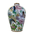 Jarrón japones de cloissone época Meiji de fines del siglo XIX con fondo blanco y decorado con flores y mariposas.