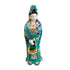 Elegante figura de caolín de una dama de la corte vestida con un kimono verde esmeralda cubriendo su cabeza todo estampado con crisantemos y flores de estanque. lleva en un canasto un pescado.