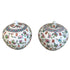 Par de jarrones de jengibre chino pintado a mano con motivos florales de crisantemos todo en un fondo blanco marfil.