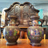 Par de cloissone chinos en forma de balustre decorado con el emperador y sus súbditos y con asas de quimera. China SXIX.