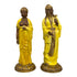 Par de figuras religiosas chinas esmaltadas mostrando vestimenta de color amarillo intenso apoyados sobre una base dorada redonda. SXIX