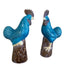 Par de gallos chinos de caolín color turquesa y crestas color café parados sobre un tronco. SXIX.