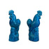 Espectacular par de gallos chinos de Caolín esmaltados en azul imperial con base representando a una madera apolillada.