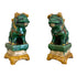 Par de leones de palacio budistas sentados sobre bases cuadrangulares, que sirven como porta varillas de incienso , en porcelana vidriada. Dinastía Ming SXVIII