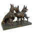 Escultura de tres perros pastores alemanes apoyados sobre un piso de adoquines. Placa de bronce "AUX AGUETS" (Vigilante). SXIX