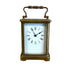 Clásico reloj mecánico de carruaje o viaje de bronce y cristal en forma de vitrina con cuerda manual. Fabricación francesa. El reloj se completa con su llave original de doble extremo para darle cuerda y ajustar la hora.