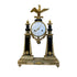 Gran reloj Imperio decorado con el águila imperial romana y con escudo de armas de batallón Francés. Acompañado de dos columnas romanas con hojas de acanto y llamas apoyado sobre una base de mármol blanco con 4 patas de bronce Ormolú.