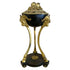 Cassolette de bronce ormolu y patina negra decorada con tres cabezas de Bacco y con coronación en frutas. Todo sostenido sobre tres patas de cabra. Época Napoleón III.