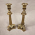 Par de candelabros de bronce ormolu con base trípode con tres patas de leon y decorado con hojas de acanto con vástago en forma de columna de corintio y coronación floral. Francia. SXIX