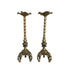 Par de candelabros de bronce chinos con hojas de loto y una rana posada en la parte superior. Todo sostenido en tres patas en forma de cabeza de león y colas de dragón.