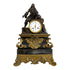 Reloj de mármol negro y bronce , decorado en su parte superior con un mosquetero y decoración de trofeo que reposa sobre una base rectangular. La esfera del reloj muestra un color balco con marcadores de hora en números romanos y un vía de ferrocarril para los minutos. Firmado Merle et Lenot Paris.