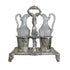 Espectacular alcuza de plaque francés sellado L B con patas de cancha y follaje tupido Rococo. Con botellas de cristal en corte de lonja y tapas facetadas y una vástago central con una coronación superior (Luis XV tardío).