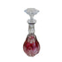 Botella belga de cristal cortado rojo intenso con cortes geomórficos con diseño gótico.