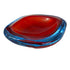 Cenicero italiano Murano rojo rodeado en sus bordes por azul claro en contraste.