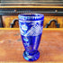 Florero de cristal checo azul decorado con figuras geométricas y estrellas en relieve transparentes. Republica Checa SXX.