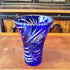 Florero azul de cristal alemán decorado con ramas en forma de abanico transparentes. La parte superior esta decorado con pequeñas longas circulares. Alemania SXX.