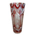 Jarrón de cristal cortado checo de color magenta con diseños geométricos.