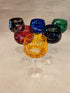 Juego de 6 copas de cristal checo con vides pie estriado y base circular. Checoeslovaquia 1930. SXX}