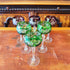 Juego de seis copas de cristal cortado alemán Bohemio en colores invierno decoradas con guirnaldas y estrellas. Muestran un vástago cincelado y una base rodeadas en lonjas. Alemania SXX.