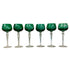 Set de copas alemanas verdes bohemias con diseños orgánicos y vides con pie cincelado y base redonda.