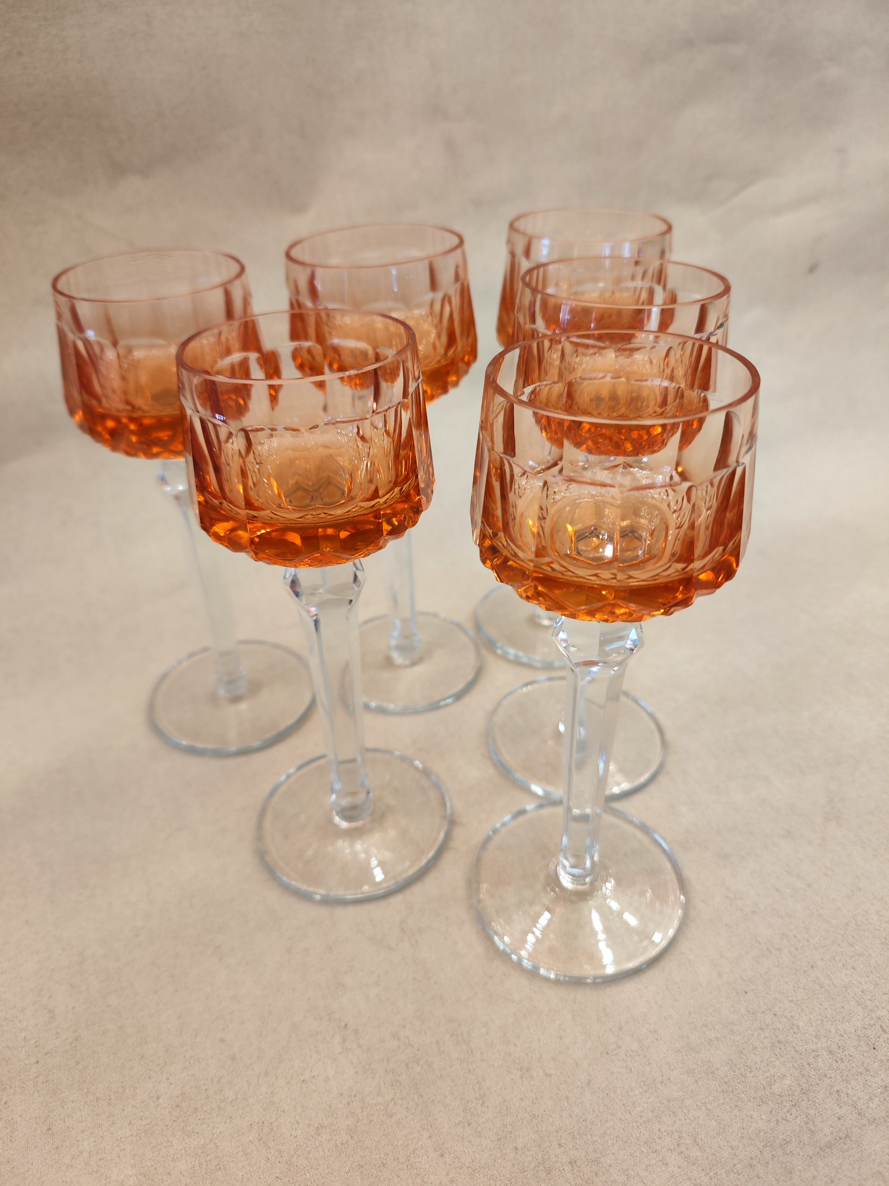 Set de copas Yungay modelo Rihn color damasco con pie en forma de columna y base redonda.