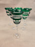 Juego de 6 copas en forma de cáliz verde parís decorada con lonjas y vástago en forma de columna sobre una base circular.