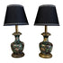Par de lámparas de cloissone japonés época Meiji negros con motivos florales con pantalla color negro.