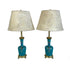 Hermoso par de lámparas francesas de cloissone Champleve decorado con flor de la pluma en fondo calipso y base de bronce ormolú.