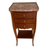 Chevette de palo rosa con marquetería en arboles frutales y vivos en bronce ormolu con una bandeja central inferior. Decorado con una superficie en mármol color rosado pálido y tres cajones.