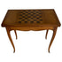 Mesa de juego francesa country de nogal francés con marquetería en arboles frutales formando un tablero de ajedrez y al desplegarla se ve un fieltro color verde esmeralda con roulle dorado