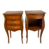 Par de chevettes de caoba y marquetería de arboles frutales con la particularidad de que viene el juego para hombre y mujer ( hombre con cajones/mujer sin cajones). Posee patas ligeramente curvas y el clásico diseño geométrico del estilo.