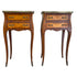 Par de chevettes de madera de caoba con marquetería de árboles frutales estilo Neo-clásico con baranda de bronce, motivos geométricos y patas ligeramente arqueadas. Con cubierta de mármol rosa pálido