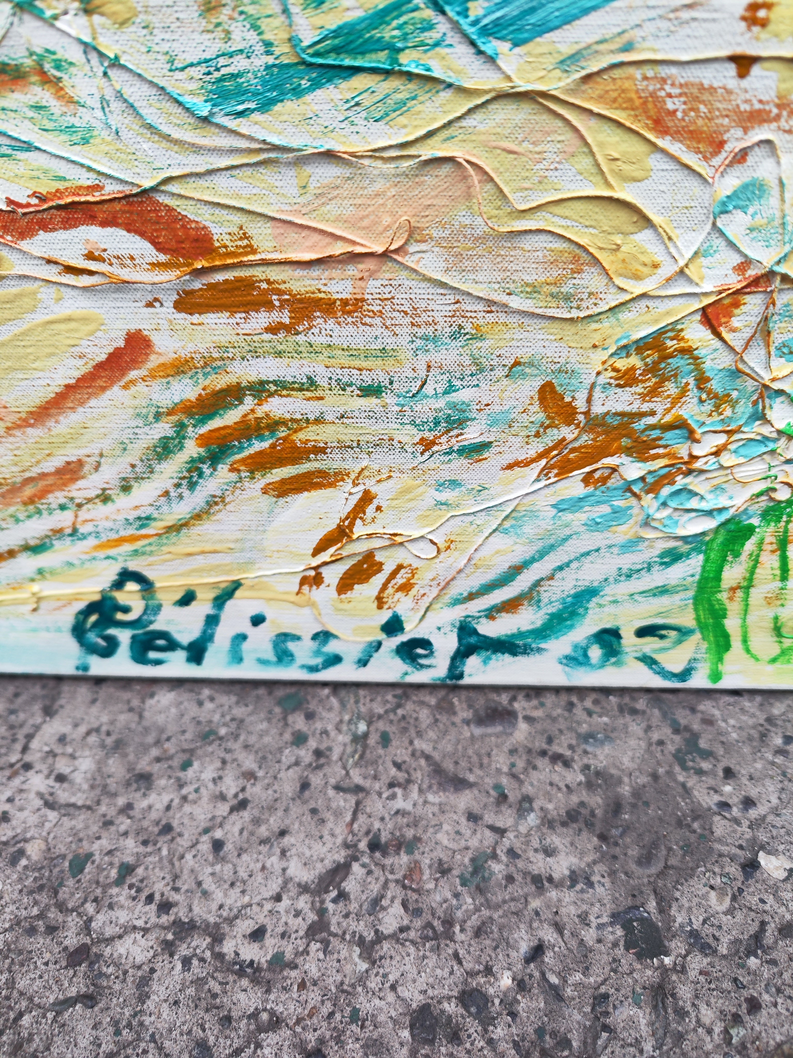 obra abstracta del siglo XX sobre lienzo sin enmarcar titulo "LE INFANCE" firmado Pelissier 2002.